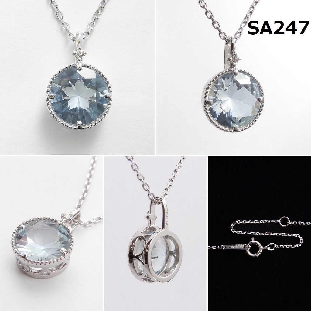 アクアマリン さくらインカット8mm SV925ダイヤモンドペンダント